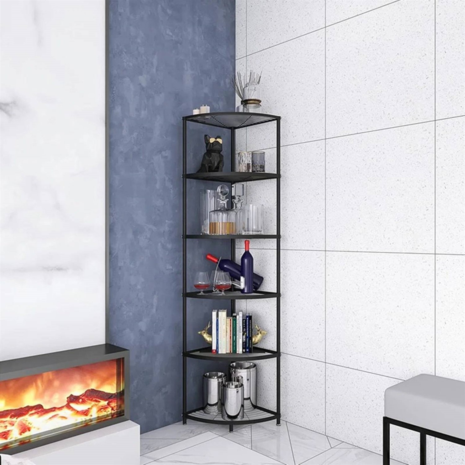 Maximize your space and turn any corner into a functional use of space with this 65-inch Freestanding Heavy Duty Corner Pot Rack 6-Tier Kitchen Shelf. Perfect for the kitchen, Cleverly tucks away in a corner, allowing you to turn an awkward waste of space into a functional storage nook. 6-tier corner shelves crafted from a solid metal frame, the stainless-steel corner shelf stand is quite robust and durable, lasting for long-term use. The kitchen corner storage shelves can fit in every nook and cranny of your home, and stand flush against the wall to make good use of the limited corner space. Best Kitchen Cabinet Pantry Organizer for your Lids, Pots, Pans, Cast Iron Skillet, Griddles, Baking Pan, Cutting Boards, and Serving Trays. The excellent material makes the product have a great load-bearing force, and it is not easy to collapse when things are put on it, and it can carry kitchen utensils stably. The capacity of six layers can put down the Pots and pans that are usually needed, and the open space is easy to take, without unnecessary opening and closing action.